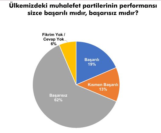 Yurttaşların, yüzde 62'si 'Ülkemizde muhalefet partileri sizce başarılı mıdır?' sorusuna başarısız dedi.