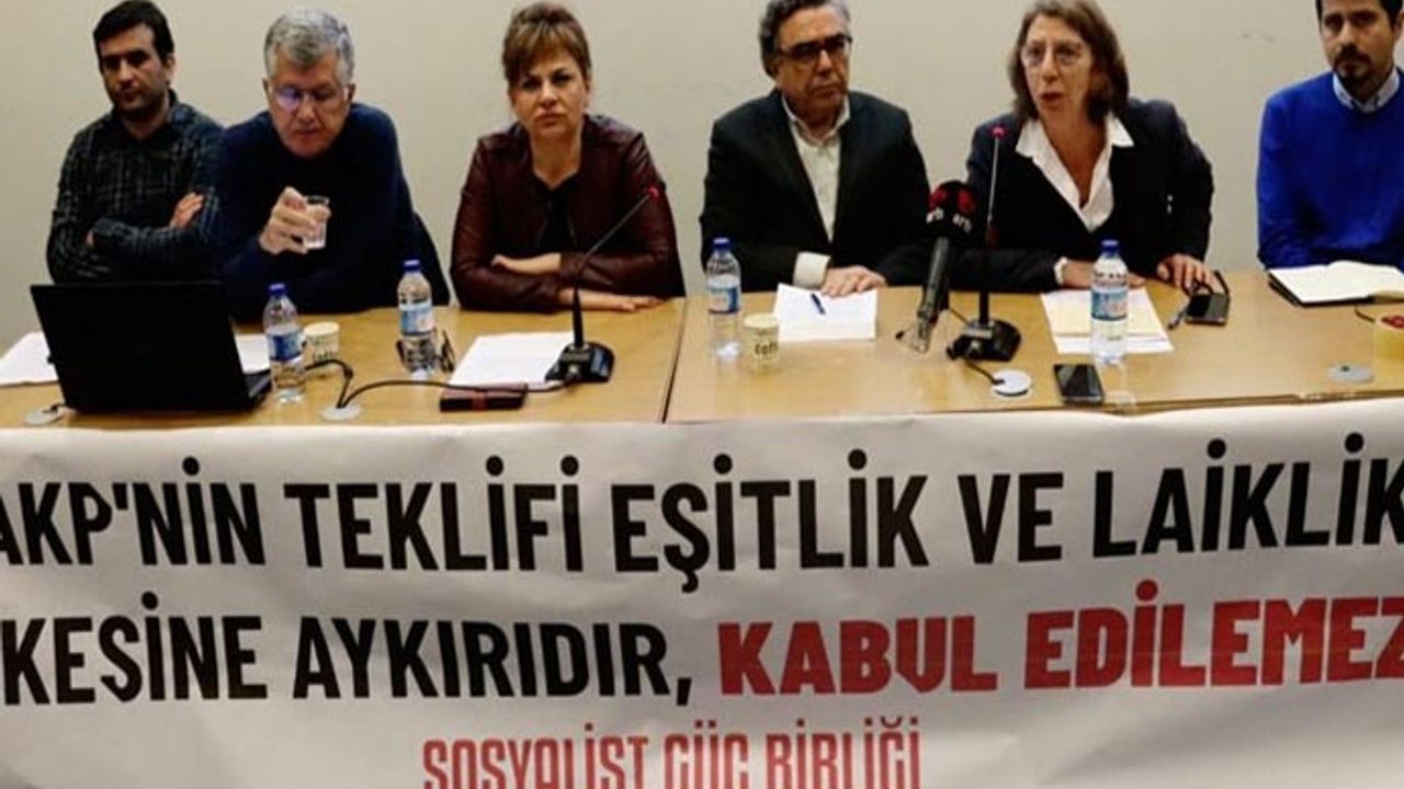 Sosyalist Güç Birliği Yürütme Kurulu adına Prof. Dr. Oğuz Oyan tarafından gerçekleştirilen açıklamada, AKP ve MHP'nin ortak imzasıyla TBMM'ye sunulan, içerisinde dini kıyafetlere kamusal özgürlük ve LGBTİ karşıtı ifadeler barındıran teklif hakkında muhalefete çağrıda bulunuldu. Oyan, “Teklif, Anayasa’nın temel haklar bölümünde ‘din ve vicdan özgürlüğünü’ düzenleyen 24’üncü maddesinde ve ‘ailenin korunmasını’ düzenleyen 41’inci maddesinde değişiklik öngörmekte ama esas olarak Anayasa’nın ‘değiştirilmesi teklif edilemez’ maddelerinden olan 2’nci maddedeki laiklik ilkesinin içini boşaltmaktadır. Bu bakımdan Anayasa’nın özüne ve biçimine temelden aykırı bir değişiklik teklifidir” dedi.