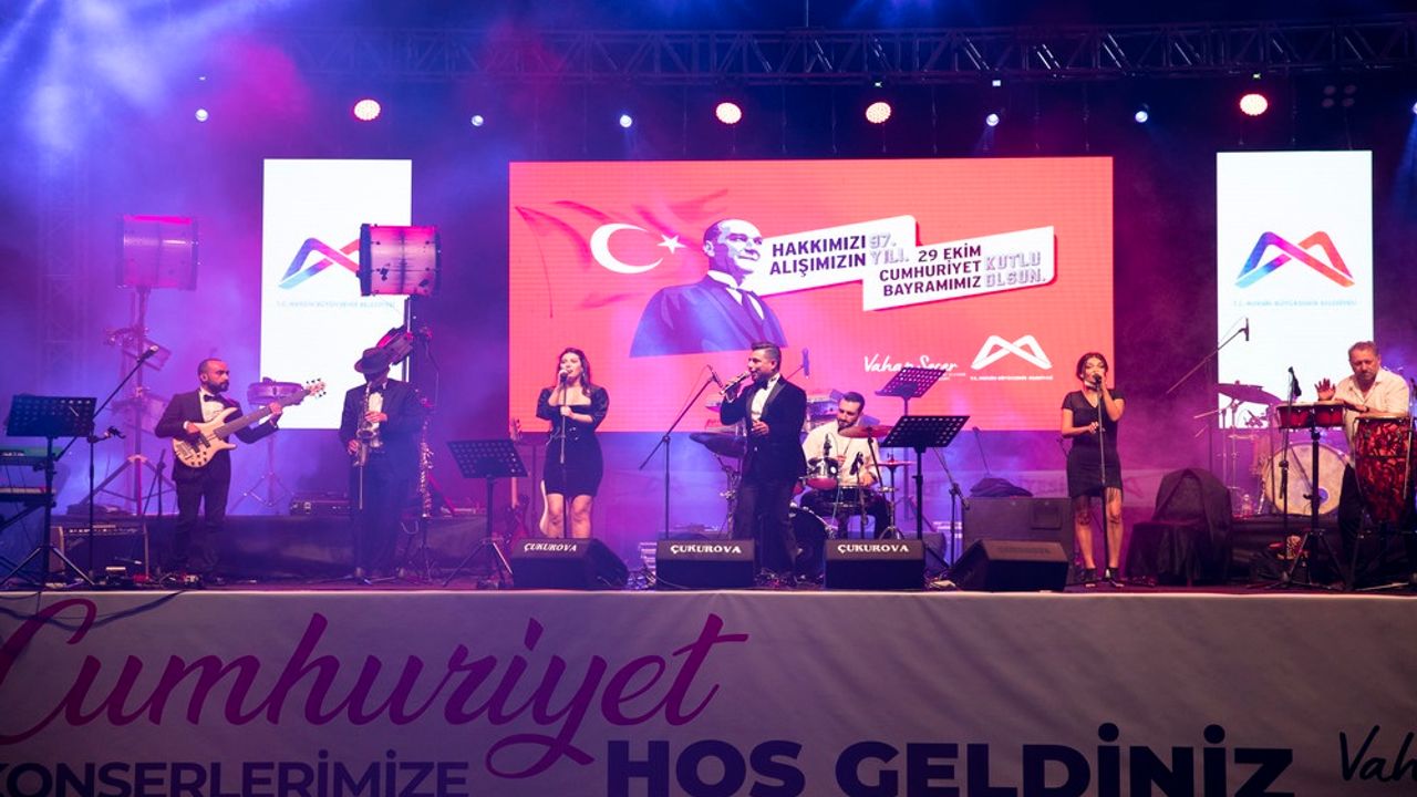 Mersin Büyükşehir Belediyesi’nin 29 Ekim’de gerçekleştirdiği Cumhuriyet Konserleri kapsamında Tarsus İlçesi’nde Yazı Tura Band ve Onur Akın, Mut İlçesi’nde Grup Duvar ve Ankaralı Turgut, Anamur İlçesi’nde Batuhan Şaraplı ve Oğuz Yılmaz, Erdemli İlçesi’nde Doğa Yavuz Uydacı ve Oğuzhan Koç, Toroslar İlçesi’nde Hasan Yeşilgöz ve Hüseyin Kağıt, Silifke İlçesi’nde Hasan Şahinsoy ve Murat Dalkılıç, Yenişehir İlçesi Özgecan Aslan Barış Meydanı’nda ise Haluk Şaş, İskender Paydaş, Suat Suna ve Fatma Turgut sahne aldı.