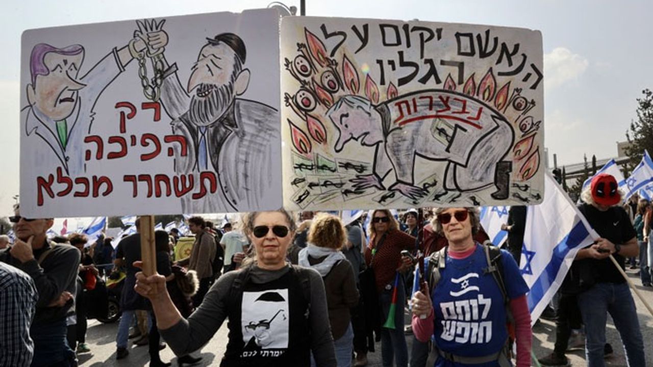 İsrail'de, Netanyahu hükümetinin yargının yetkilerini kısıtlayan yasa teklifine karşı başlayan kitlesel protestolar yedinci haftayı geride bırakırken, bu kez protestonun adresi teklifin oylanacağı Batı Kudüs'teki Meclis oldu. Ülkedeki sivil toplum kuruluşları, hukukçular ve yüksek teknoloji ile sağlık sektörü gibi meslek gruplarının çağrısı üzerine binlerce kişi Meclis önünde toplandı. Batı Kudüs'ün yanı sıra Tel Aviv ve diğer kentler de gösterilere sahne oldu. Tel Aviv'deki gösterilerde yüzlerce kişi şehrin merkezindeki Azrieli Kavşağı'nı kapatarak araç geçişini engelledi. Öte yandan Yüksek Mahkemenin bazı yetkilerini Meclise devreden ve mahkemenin temel konularda yargı denetimi yapma yetkisini fiilen ortadan kaldıran teklifin yasalaşmasına yönelik oylamanın yapılacağı ilk oturum Mecliste bugün gerçekleştirilecek. Teklifin yasalaşması için Mecliste yapılacak 3 oturumda da onay alması gerekiyor. https://tele1.com.tr/israil-acilimi-sonrasi-yeni-medya-iddiasi-707284/