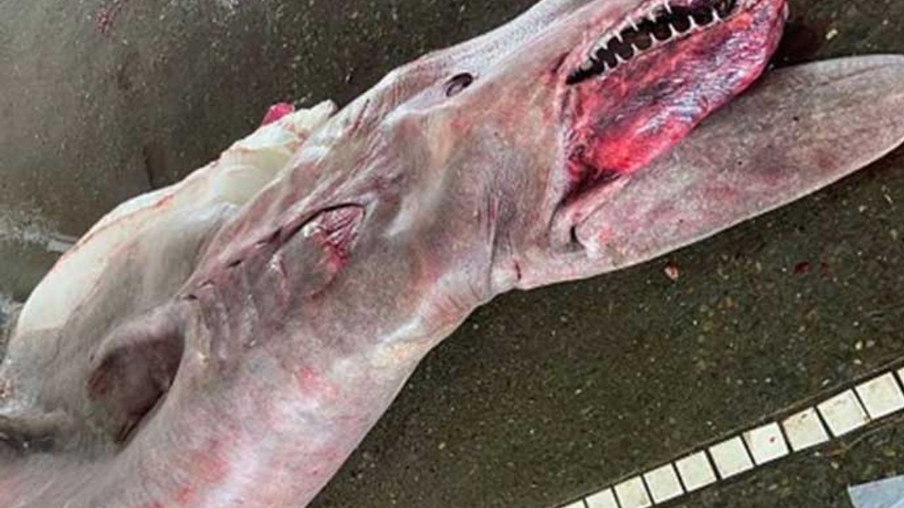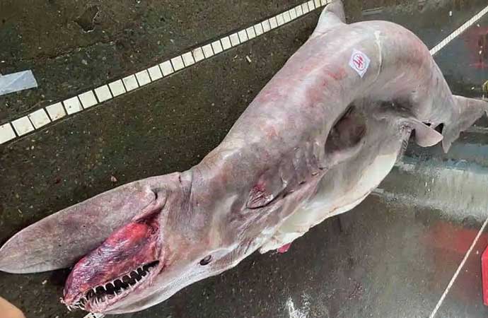 Tayvan'ın Yilan şehrinin kuzeydoğu sahillerinde 'Yaşayan Fosil' de denen giblin köpek balığı yakalandı. Yakalanan köpek balığının hamile olduğu anlaşıldı. Goblin köpek balığının 800 kilogram ağırlığında olduğu kaydedildi.