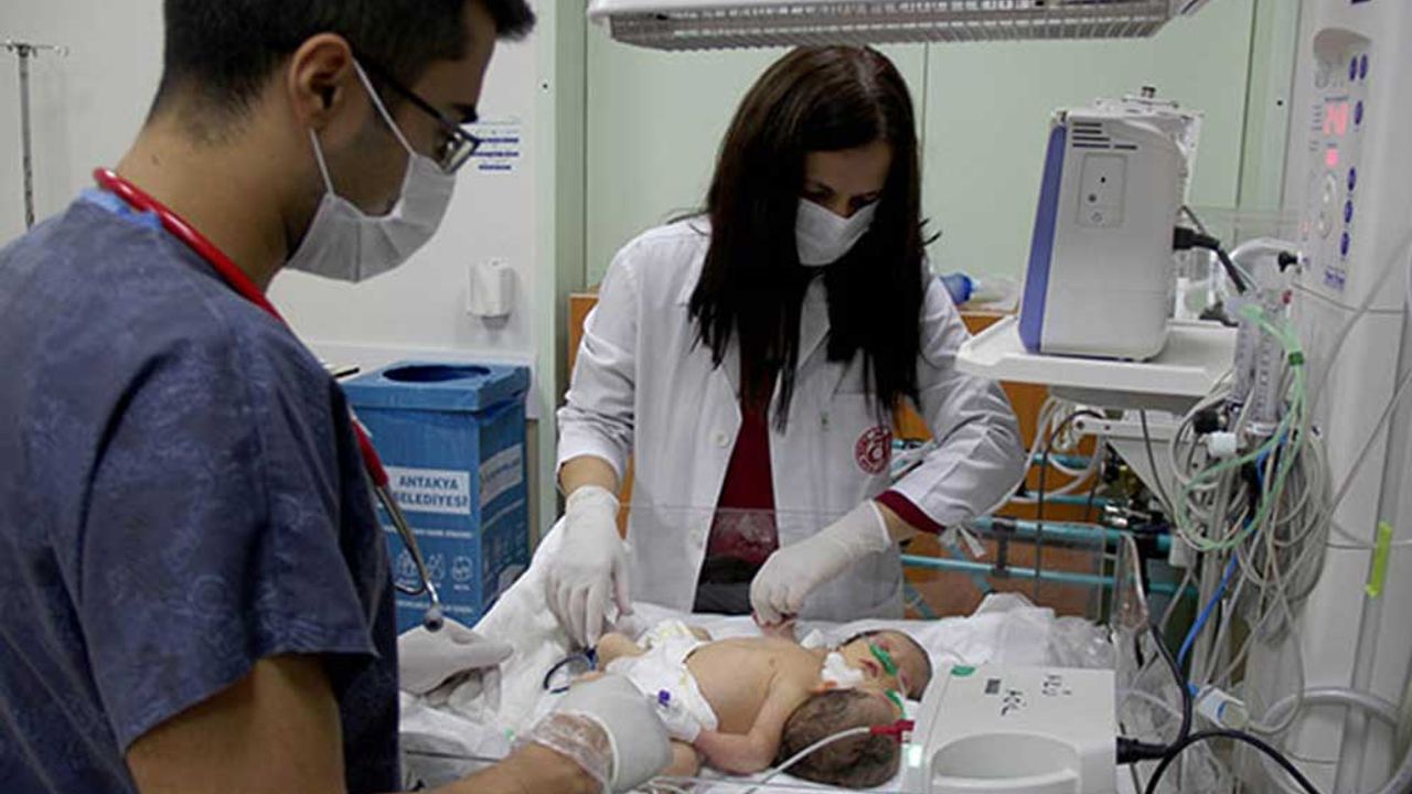 Suriye sınırından alınarak 112 acil ekiplerince Hatay’a getirilen ve tek kalple hayata tutunan siyam ikizleri, Hatay Mustafa Kemal Üniversitesi Sağlık Uygulama ve Araştırma Hastanesi’nde tedaviye alındı.