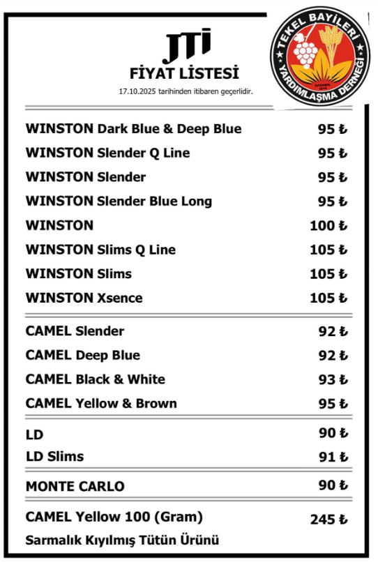 Bir süre sonra JTI grubu da fiyat listesini güncelledi. Gruba ait en ucuz sigara fiyatı 90 TL'ye en pahalı sigara fiyatı ise 105 TL'ye çıktı.