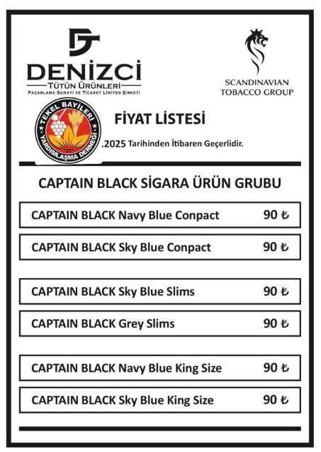 Scandinavian Tobacco Group'un yeni fiyat listesi ise şöyle: