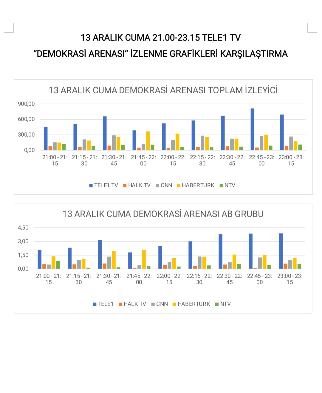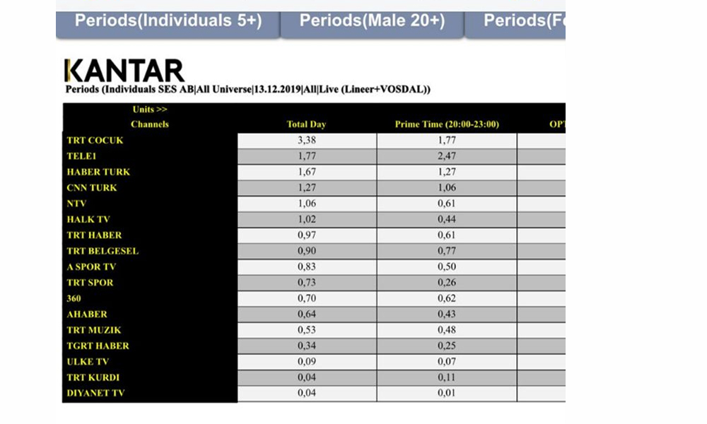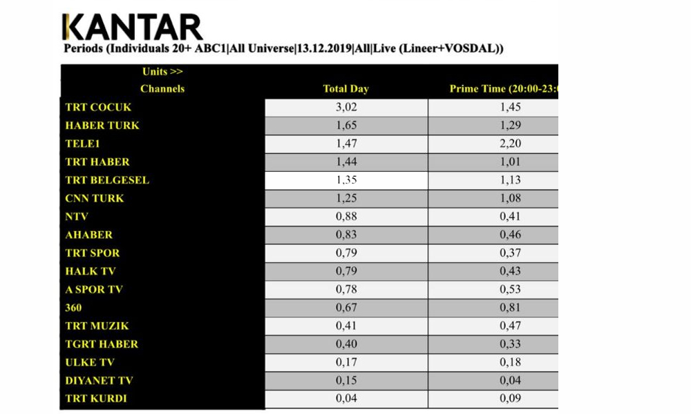 Türkiye de dün gece TELE1'i izldi. TELE1 haber kanalları arasında açık ara toplam izleyici ve AB grubunda birinci olurken, tüm kanalları içinde de ilk dört içinde yer aldı.