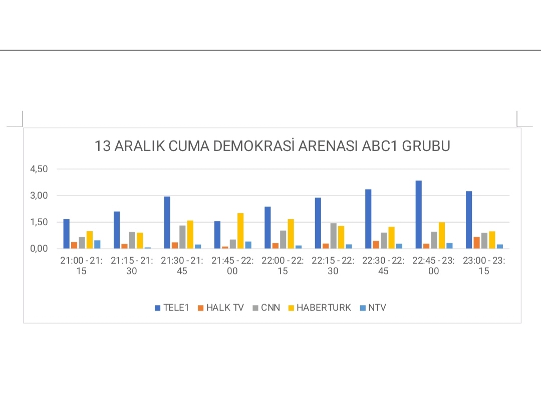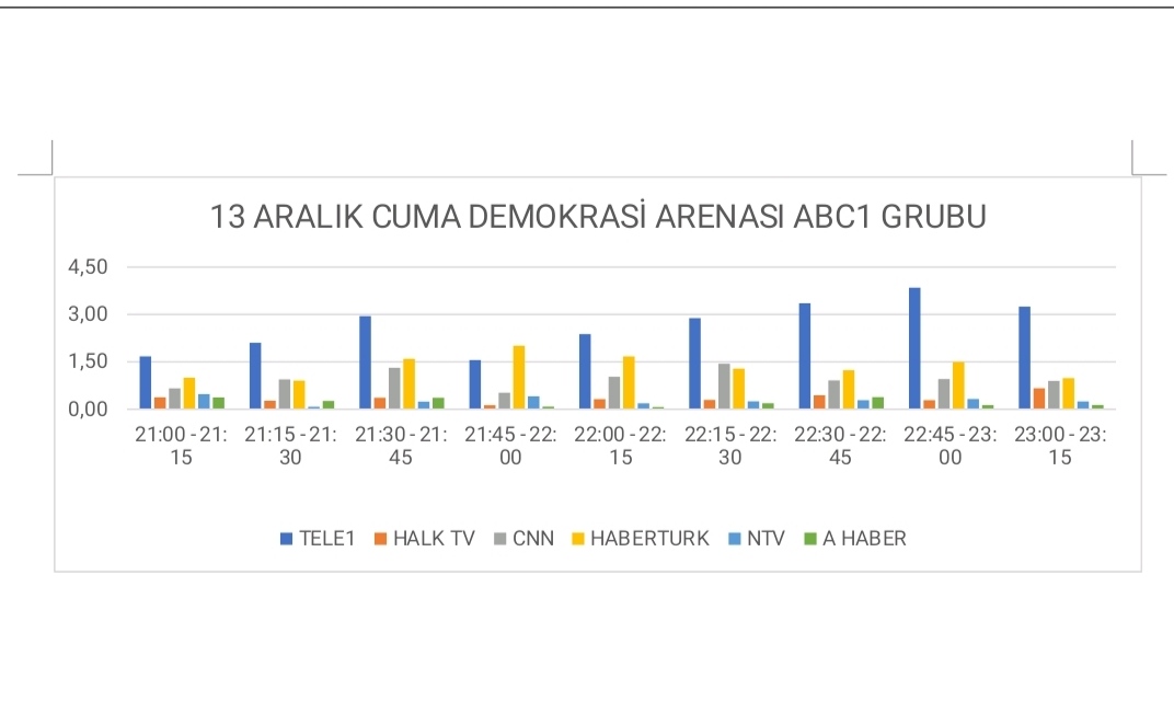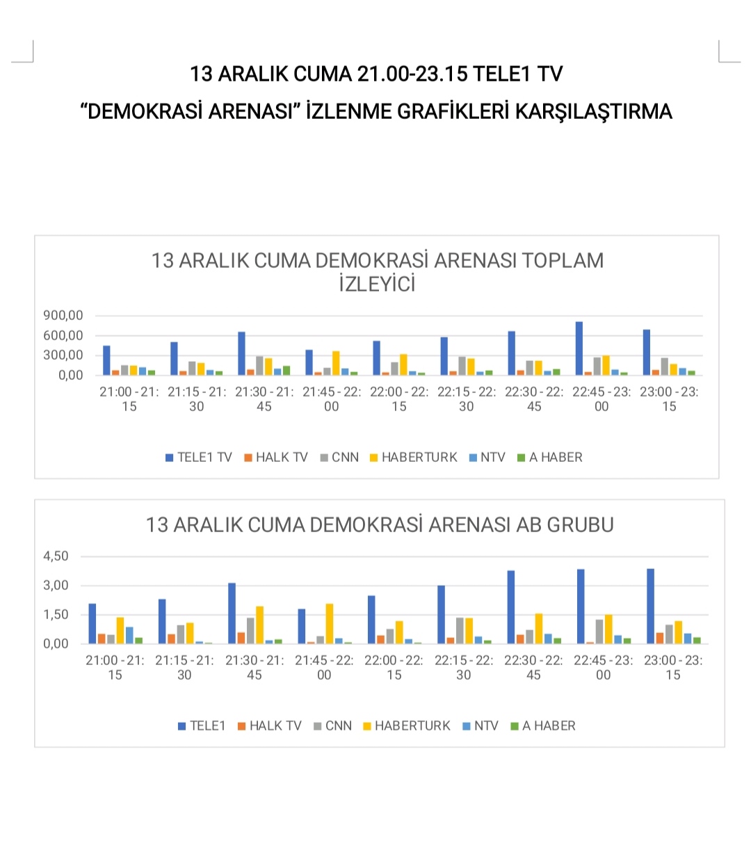 Dün akşam TELE1 ekranlarında yayınlanan Uğur Dündar'ın İstanbul Büyükşehir Belediye Başkanı Ekrem İmamoğlu'nu ağırladığı Demokrasi Arenası A Haber, NTV, CNN, Habertürk, Halk TV gibi haber kanalları arasında toplam ve AB grubunda açık ara en çok izlenen program oldu.