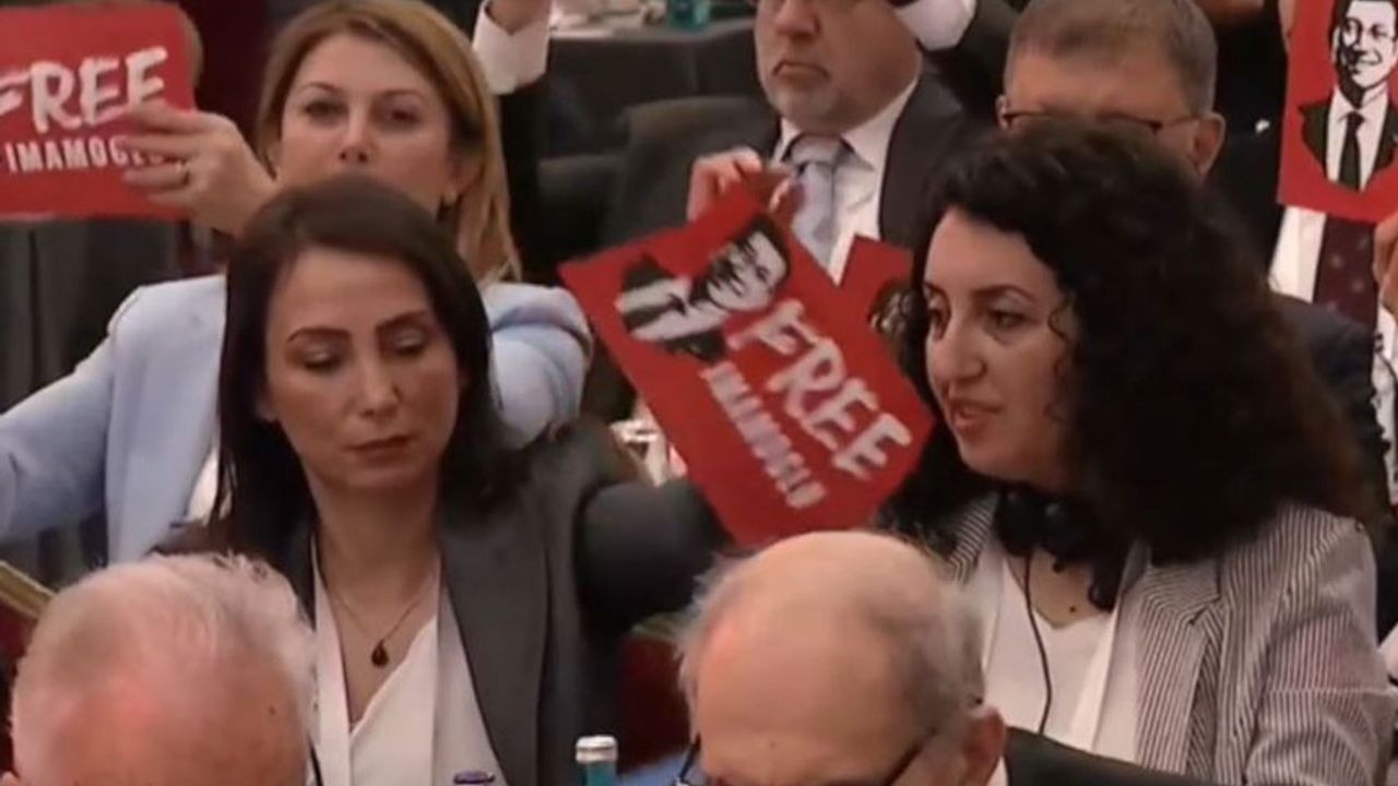 İstanbul'daki toplantıda, İspanya Başbakanı Pedro Sanchez'in aralarında bulunduğu katılımcılar 'Free İmamoğlu' döviziyle poz verdi. İmamoğlu'na destek için kaldırılan dövizler, sosyal medyada "DEM Partililer Free İmamoğlu dövizini kaldırmadı" tartışmasına sebep oldu.