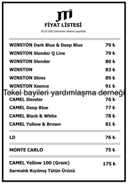 Tekel Bayileri Yardımlaşma Derneği (TBYD) Başkanı Erol Dündar, güncellenen fiyat tarifesini sosyal medya hesabında yaptığı paylaşımla duyurdu.