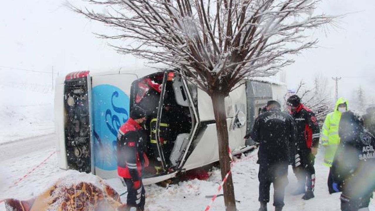 Tokat'ın Erbaa ilçesinde karlı yolda kontrolden çıkan yolcu otobüsünün devrilmesi sonucu 1 kişi hayatını kaybetti, 38 kişi yaralandı.