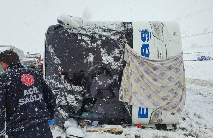 İstanbul'dan Erzurum'a giden İsmail Binböl (45) yönetimindeki Esadaş Turizm firmasına ait 25 ER 280 plakalı yolcu otobüsü, karlı yolda kontrolden çıkarak, refüje devrildi. İhbar üzerine olay yerine çok sayıda ambulans sevk edildi.