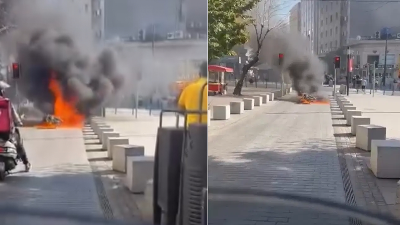 İstanbul Fatih'te sürücüsünün muayenesini yaptıramadığı motosiklet trafikten men edildi. Bu duruma sinirlenen sürücü motosikletini ateşe verdi.