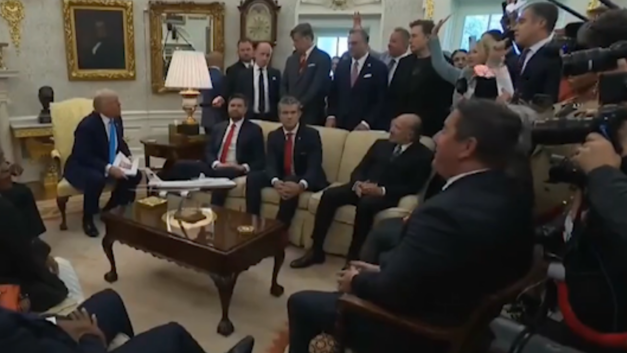 ABD Başkanı Donald Trump, Çarşamba günü Oval Ofis'te Güney Afrika Devlet Başkanı Cyril Ramaphosa ile basın toplantısı düzenledi. Toplantı sırasında NBC News muhabiri Peter Alexander, Pentagon'un Çarşamba günü Air Force One olarak kullanılmak üzere 400 milyon dolarlık bir Katar jetini resmi olarak kabul etmesi konusunda Başkan Trump’a soru sordu.