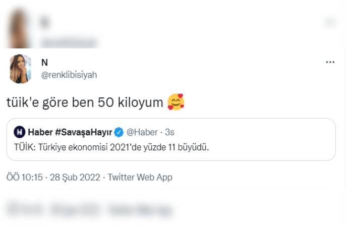 Yurttaşlar ise ekonomik kriz yaşandığını hatırlatarak TÜİK rakamlarına tepki gösterdi. Rakamları inandırıcı bulmayan yurttaşlar, sosyal medya platformu Twitter'da birçok paylaşım yaptı. Yapılan paylaşımlardan bazıları şu şekilde: