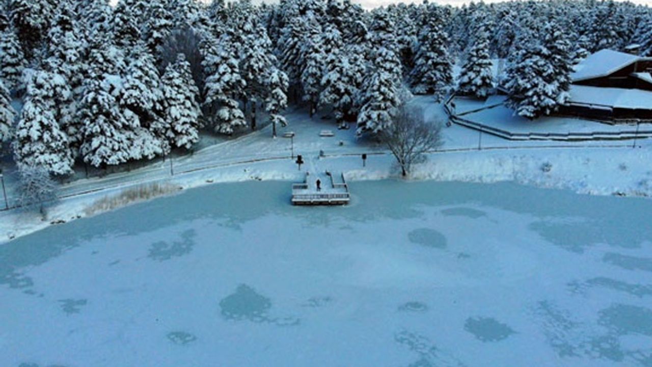 Meteoroloji Genel Müdürlüğü'nün Bolu Batı Karadeniz Orman Araştırma İstasyonu'nda hava sıcaklığı eksi 32 derece olarak kaydedilirken, Gerede ilçesine bağlı Samat köyü ise sıfırın altında 30,6 ile ikinci sırada yer aldı. Türkiye'nin en soğuk üçüncü yeri ise sıfırın altında 28,9 dereceyle Bolu'nun Dörtdivan ilçesi oldu. GÖLCÜK BUZ TUTTU Bolu'nun doğal güzellikleriyle ünlü Gölcük Tabiat Parkı'ndaki gölün yüzeyi buz tuttu. Dört mevsim ayrı güzelliğe bürünen Gölcük Tabiat Parkı'nda geçen günlerde etkili olan yağışın ardından kar kalınlığı yarım metreyi geçti.