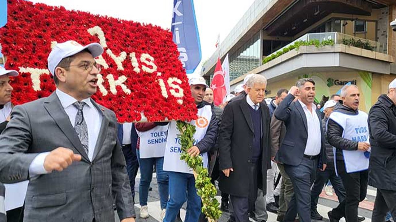 Türkiye İşçi Sendikaları Konfederasyonu (TÜRK-İŞ), TOLEYİS ve beraberindeki grup 1 Mayıs Emek ve Dayanışma Günü nedeniyle Kazancı Yokuşuna karanfil bırakıp Taksim Meydanı’na gelerek çelenk bıraktı."TAKSİM'DE GÜVENLİĞİN SAĞLANMASI GEREKİR"