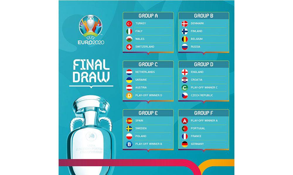 12 Haziran-12 Temmuz 2020 tarihleri arasında düzenlenecek Avrupa Futbol Şampiyonası’nın (EURO 2020) kuraları Romanya’nın başkenti Bükreş’te çekildi. Milli takımın ilk rakipleri İtalya, İsviçre ve Galler oldu. Turnuvanın açılış maçını 12 Haziran'da İtalya ile karşılaşacak olan Türkiye oynayacak.