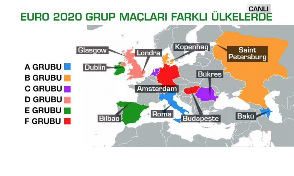 EURO 2020, 12 Haziran - 12 Temmuz tarihleri arasında düzenlenecek. Grup aşaması 12 farklı şehirde oynanacak. 24 takım, 4'erli 6 gruba ayrılacak. Kura çekimi 30 Kasım saat 20.00'de yapılacak. Her grupta maçlar 2 ayrı şehirde oynanacak.