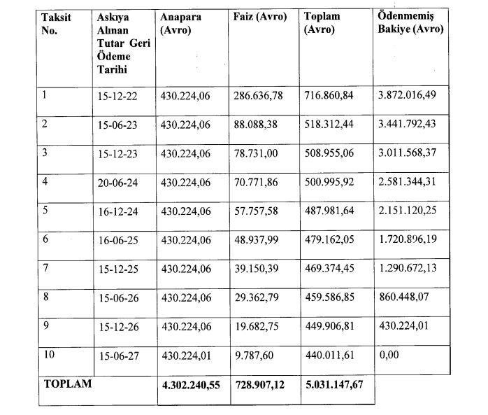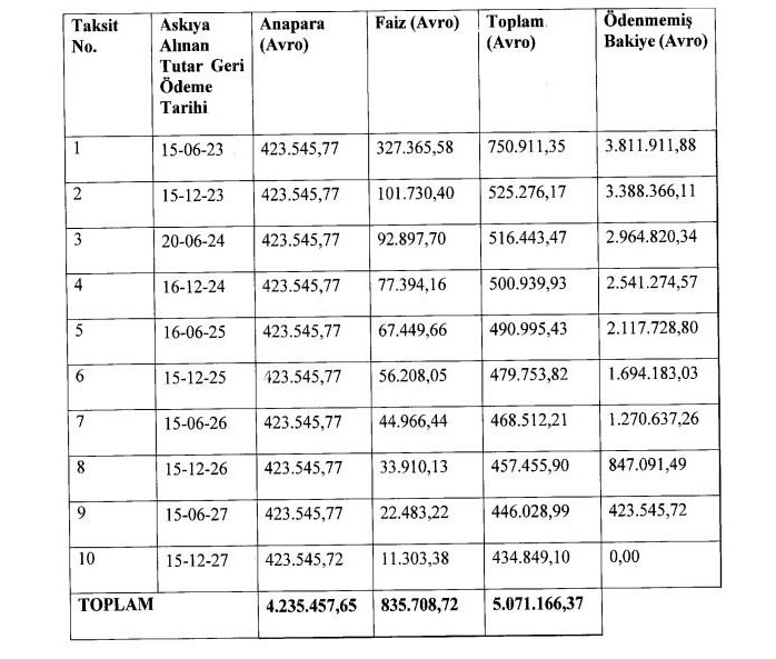 Yeniden yapılandırma ödemelerinin 2022 Haziran ayında başlaması ve 2027 yılına kadar tamamlanması öngörüldü. İşte ödeme tablosu: