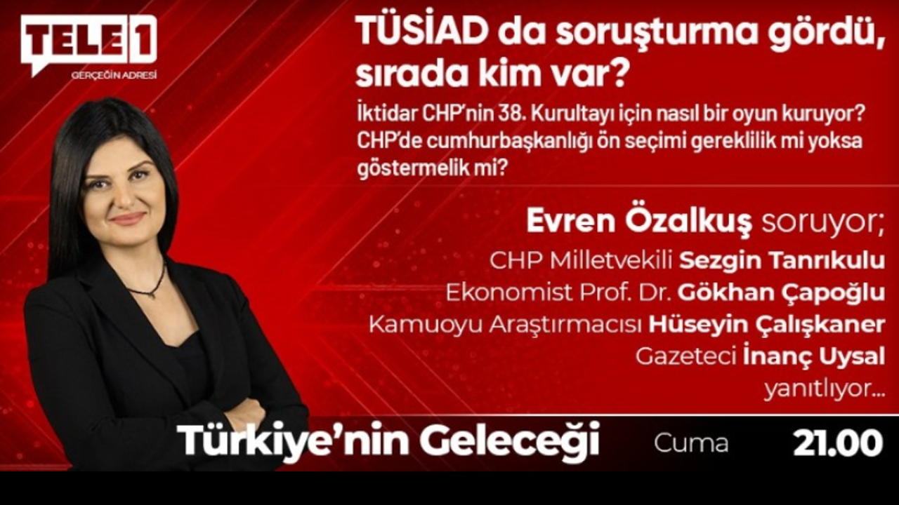 TELE1’de yayınlanan Evren Özalkuş’un hazırlayıp sunduğu Türkiye’nin Geleceği, bu akşam da önemli konu başlıklarıyla ekrana geliyor.