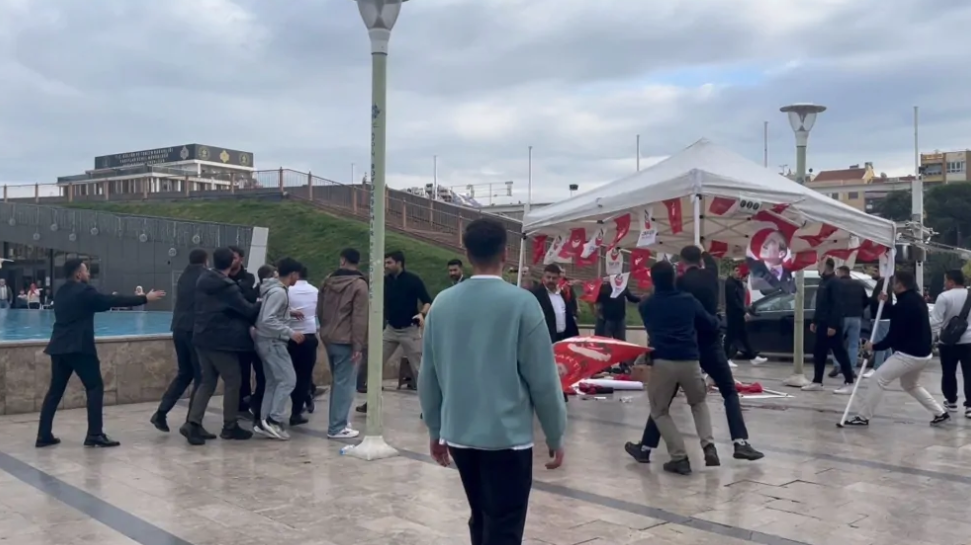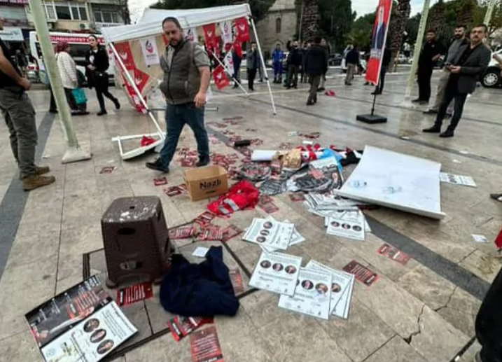 Zafer Partisi Aydın İl Başkanlığı'nın Atatürk Kent Meydanı’ndaki kurduğu standa saldırıya düzenlendi.