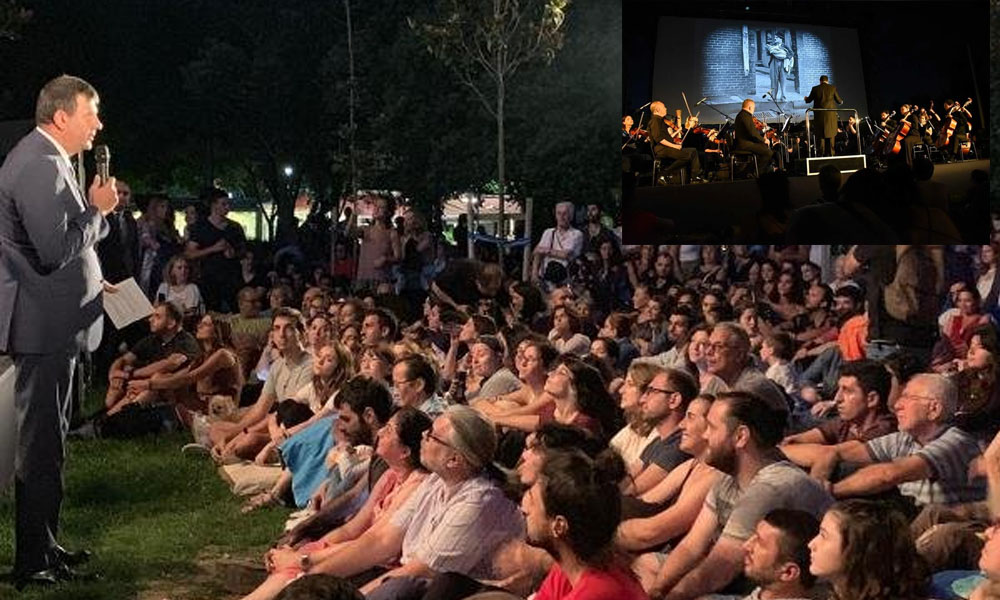 Filarmoni Orkestrası eşlik etti. Türkiye’de ilk kez açık havada orkestra müziği eşliğinde gösterilen film için Charlie Chaplin’in özel olarak bestelediği müzik icra edildi. Kadıköy Belediyesi Sinematek/Sinema Evi tarafından deniz kenarında kurulan dev perdeyi yaklaşık 2.500 kişi izledi.