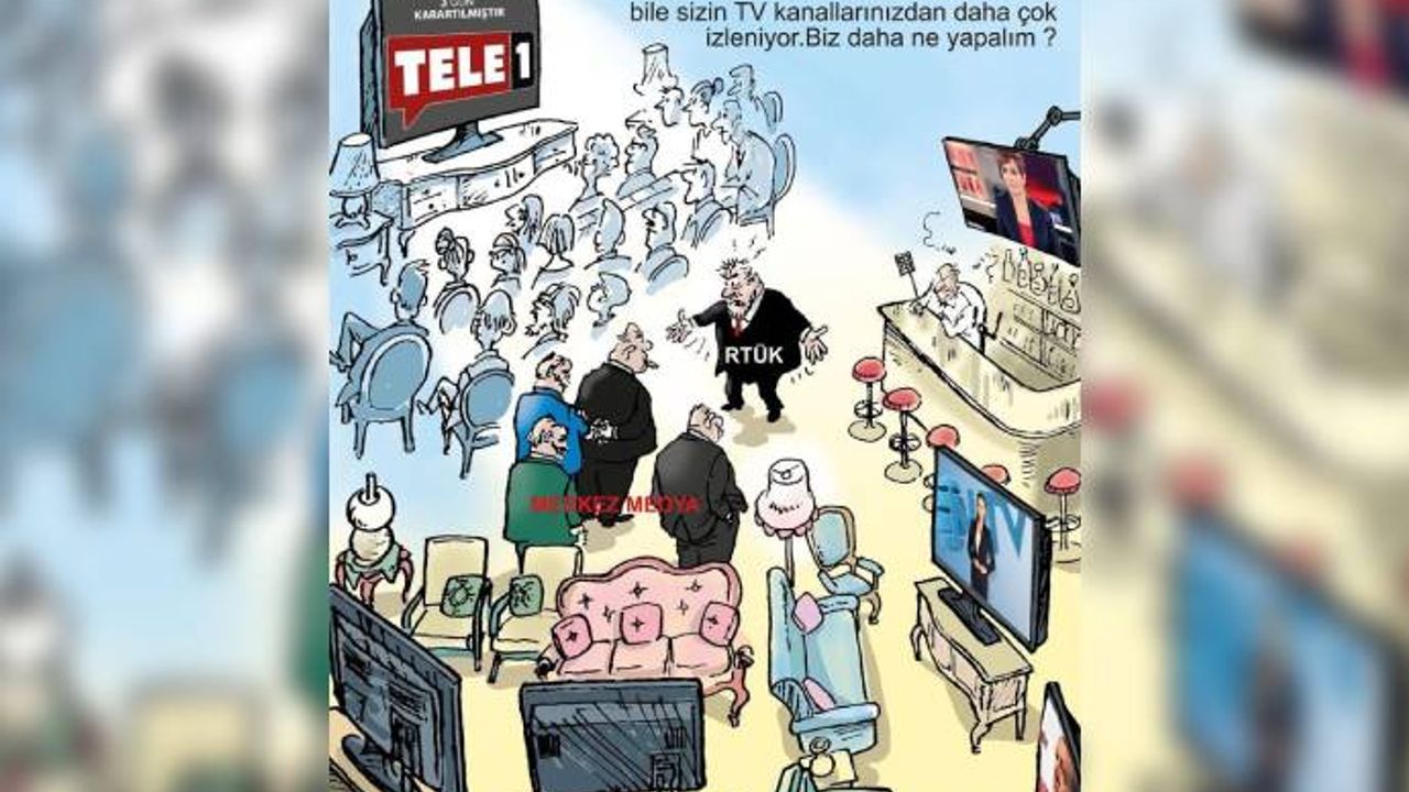 RTÜK'ün TELE1'e verdiği hukuksuz cezaya tepki yağdı. Başarılı karikatürist Ercan Akyol da tepkisi çizdiği karikatür ile gösterdi.