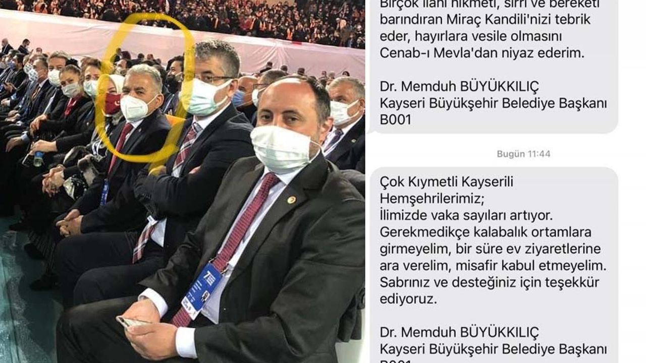 Kayserililere koronavirüse karşı kalabalık ortamlarda bulunmamaları için uyarıda bulunan AKP’li Kayseri Büyükşehir Belediye Başkanı Memduh Büyükkılıç, AKP'nin 'lebaleb' kongresine katıldı.