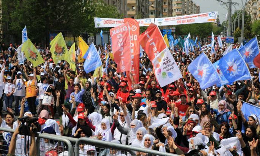 1 Mayıs kutlamaları için Diyarbakır’daki alanına giden vatandaşlar dikkat çeken bir yasakla karşılaştı. Alanda güvenlik önlemi alan emniyet güçleri, beyaz tülbent takılmasına izin vermedi. Bu ilginç yasağa vatandaşlar “Bunun yazılı olarak yasaklandığını tebliğ edin, ona göre bırakalım” diye tepki gösterdi.