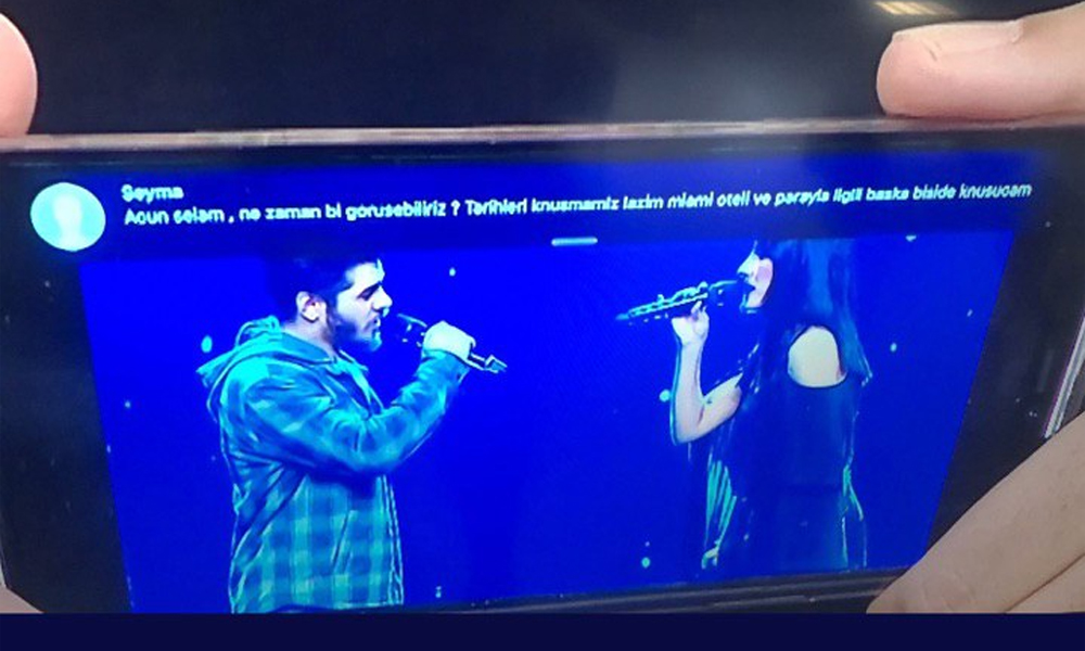 TV8'de yayınlanan Gel Konuşalım programına konuk olan Acun Ilıcalı, yapımcılığını ve sunuculuğunu yaptığı 'O Ses Türkiye' programındaki bir performansı telefonundan canlı yayında izlettiği sırada telefonuna eski eşi Şeyma Subaşı'dan mesaj geldi.