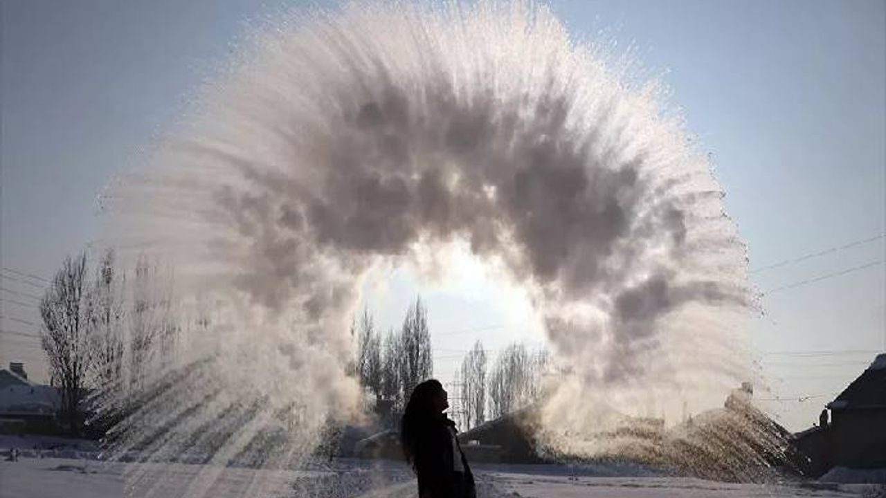 Hava sıcaklığının sıfırın alında 33 derece olduğu Ağrı'da, havaya serpilen kaynar suyun donduğu anlar güzel görüntüler oluşturdu.