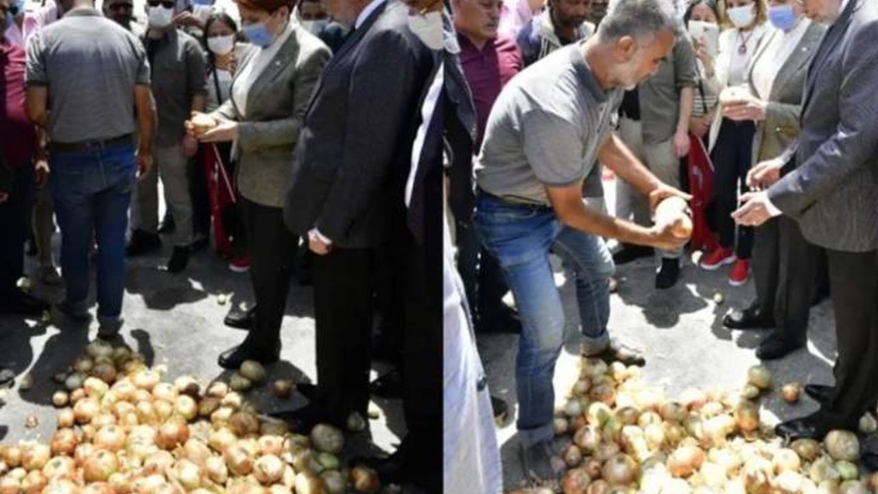 İYİ Parti lideri Meral Akşener'in Hatay ziyaretinde bir çiftçi hükûmete tepkisini elinde kalan soğanları yere dökerek gösterdi, "Bakanımız geldi, hiç soğandan bahsetmedi. Buğdayı aldı, gittiler. Biz burada çaresiziz" dedi.
