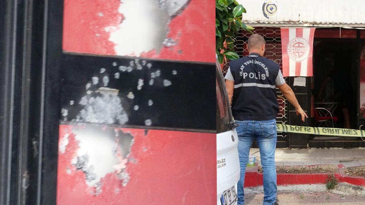 Antalyaspor Taraftarlar Derneği'ne motosikletli bir kişi tarafından tüfekle 3 el ateş açıldı. Saçmalar kapıya isabet etti.