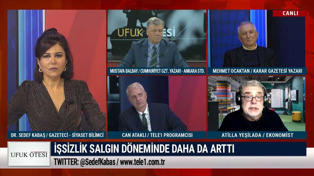 Gazeteci Dr. Sedef Kabaş’ın moderatörlüğünü yaptığı ve TELE1 programcısı Can Ataklı, TELE1 programcısı Mustafa Balbay ve Yazar Mehmet Ocaktan’ın bileşenleri olduğu Ufuk Ötesi programının konuğu; Ekonomist Atilla Yeşilada oldu.