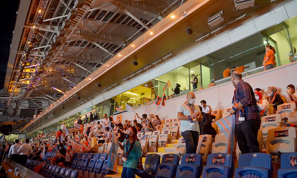 Yeni tip koronavirüs (Kovid-19) salgını nedeniyle 17 bin 500 kişilik Başakşehir Fatih Terim Stadı'nın tribünlerine 3 bin 500 taraftar alındı.