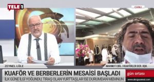 Kuaförler Derneği Başkanı Mahmut Ebil, Tele1 TV canlı yayında Zeynel Lüle'nin sorularını yanıtladı. İlk güne ilginin yoğun olduğunu dile getiren Ebil, vatandaşların randevu kurallarına uymalarını istedi.