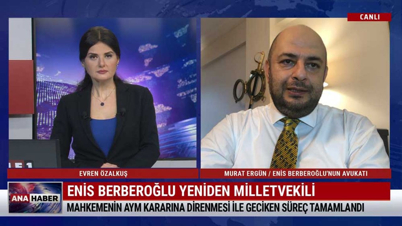 Evren Özalkuş'un sunduğu TELE1 Ana Haber'in bugünkü konuğu, Enis Berberoğlu'nun avukatı Murat Ergün oldu. Ergün, Enis Berberoğlu'nun yeniden milletvekili olmasının ardından açıklamalarda bulundu.