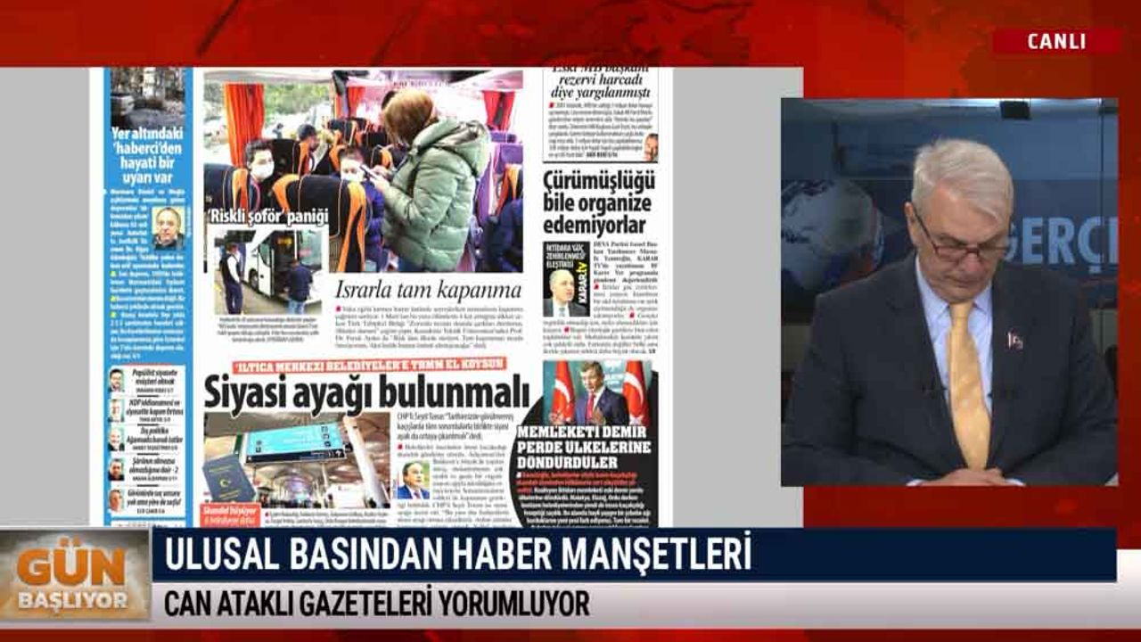 Genel Can Ataklı: Deniz Kuvvetleri Komutanı nasıl rahat uyuyor? - GÜN BAŞLIYOR 20.04.2021 - 10:58 20.04.2021 - 10:58 Gün Başlıyor'da Can Ataklı, gazete manşetlerini yorumlayıp Karadeniz'deki 'gergin havayı' yorumladı. Ataklı, Karadeniz'de bir savaşın çıkabileceğini söyledi.