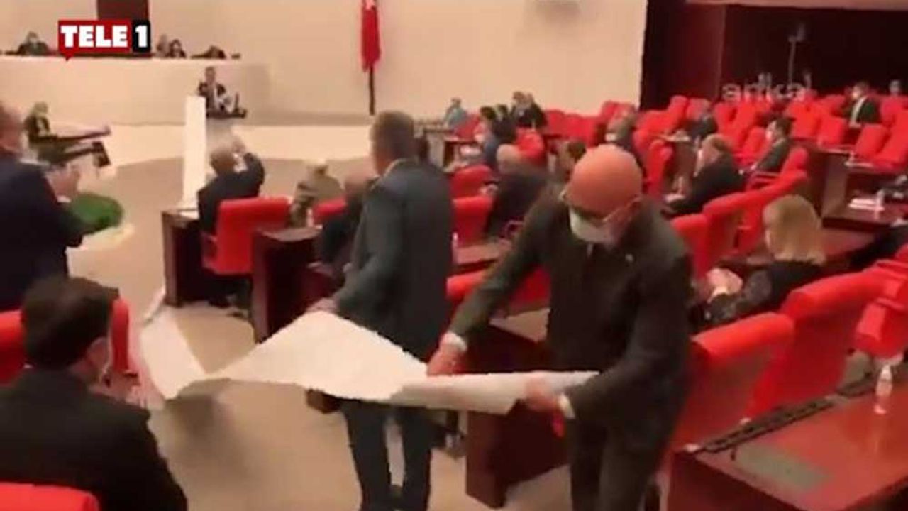 Genel Meclis’te AKP’nin sattıkları kağıda döküldü, 13 metreye sığmadı! 11.12.2020 - 18:32 11.12.2020 - 18:32 Loading... CHP'li Kaya mecliste yaptığı konuşmayla gündem oldu. Metrelerce uzunlukta iki tane liste açan Kaya, "15 metrelik liste CHP'nin Türkiye'ye yaptığı fabrikalar, limanlardır. 13 metrelik liste ise AKP'nin sattıklarıdır, okuyun öğrenin"...