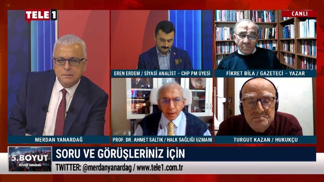 Merdan Yanardağ'ın hazırlayıp sunduğu 5. Boyut programının konukları, Hukukçu ve İstanbul Barosu eski başkanı Turgut Kazan, CHP PM üyesi Eren Erdem, Gazeteci - Yazar Fikret Bila ve Halk Sağlığı Uzmanı...