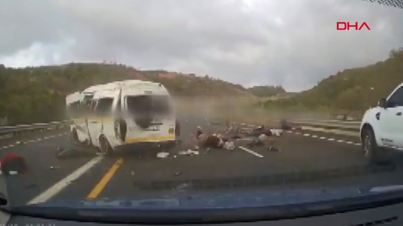 Dehşet dolu anlar... Takla atan minibüsteki yolcular yola savruldu
