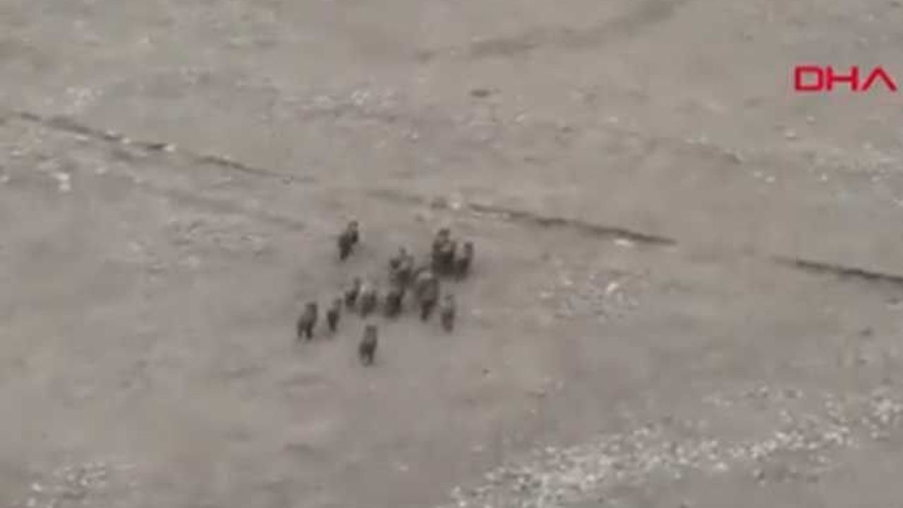 Kars'ta boş bir arazide drone ile görüntülenen domuz sürüsünün görüntüleri görenlerin ilgisini çekti.