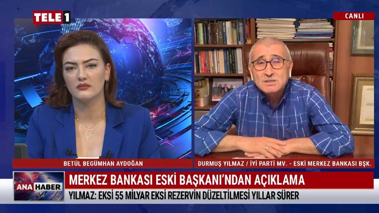 Betül Begümhan Aydoğan'ın sunduğu TELE1 Hafta Sonu Ana Haber'in bugünkü konuğu, Merkez Bankası eski Başkanı İyi Partili Durmuş Yılmaz oldu. Yılmaz, Merkez Bankası'nın rezervleriyle ilgili açıklamalarda bulundu.