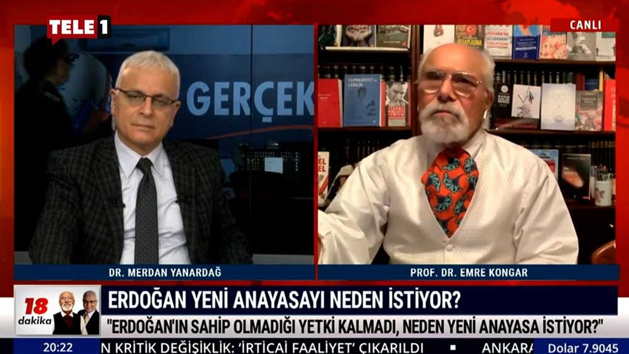 Genel Emre Kongar: Erdoğan, Yeni Anayasa ile Cumhuriyet'in temellerini hedefliyor 24.03.2021 - 20:34 24.03.2021 - 20:34 TELE1 Genel Yayın Yönetmeni Dr. Merdan Yanardağ ve Prof. Dr. Emre Kongar 18 Dakika’da bugün; Partili Cumhurbaşkanı Erdoğan'ın kurultay konuşmasını değerlendirdiler.
