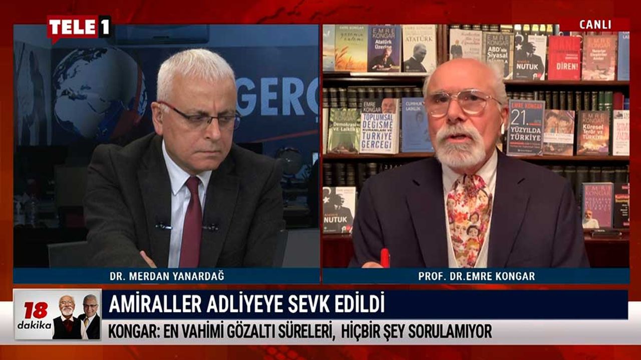 TELE1 Genel Yayın Yönetmeni Dr. Merdan Yanardağ ve Prof. Dr. Emre Kongar 18 Dakika’da bugün; ifade işlemleri tamamlanan emekli 14 amiralin adliye süreçlerini değerlendirdiler.