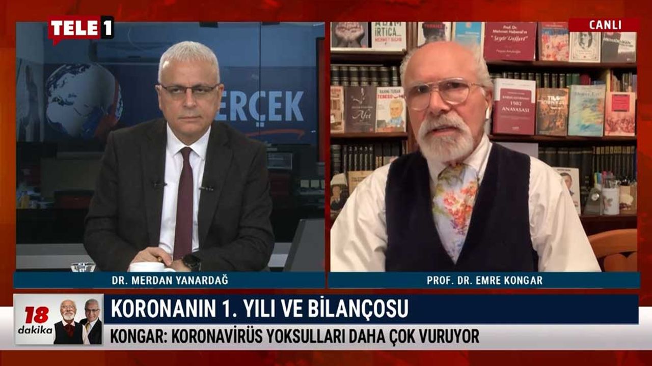 Genel Emre Kongar: İktidar, kendi ideolojilerini ön plana çıkararak yeterli önlemleri almadı 11.03.2021 - 20:52 11.03.2021 - 20:52 TELE1 Genel Yayın Yönetmeni Dr. Merdan Yanardağ ve Prof. Dr. Emre Kongar 18 Dakika’da bugün; Türkiye'de koronavirüsün bir yıllık bilançosunu değerlendirdiler.