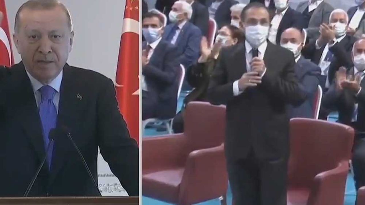 AKP'li Cumhurbaşkanı Erdoğan'ın video konferans yöntemiyle katıldığı toplantıda, Adıyaman İl Başkanı Dağtekin'in "Rabia" selamını unuttuğu anlar, sosyal medyada gündem oldu.