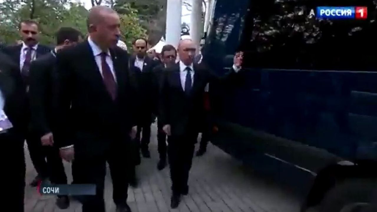 Cumhurbaşkanı Erdoğan'ın Rusya Devlet Başkanı Vladimir Putin ve İran Cumhurbaşkanı Hasan Ruhani ile bir araya geldiği Soçi zirvesine dair yayınlanan bir video, Erdoğan ile Putin arasındaki bir diyaloğu...