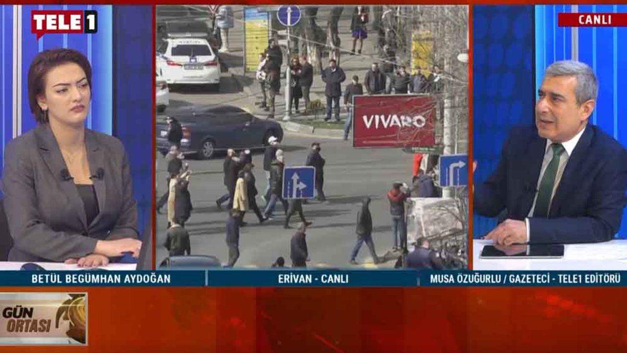 Betül Begümhan Aydoğan'ın sunduğu Gün Ortası'nın bugünkü konuğu, TELE1 editörü ve gazeteci Musa Özuğurlu oldu. Özuğurlu, Ermenistan'da meydana gelen 'darbe girişimi'ni yorumladı.