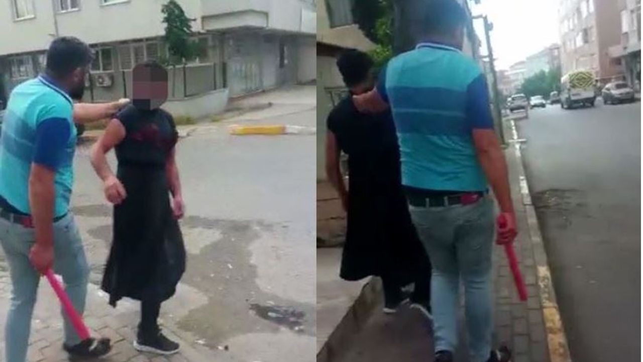 İstanbul Pendik'te yaşayan Ercan O., eşini bir süredir taciz ettiğini iddia ettiği kişiye kadın kıyafeti giydirdi, sopayla döve döve polis merkezine götürdü. Yaşananlar cep telefonu kamerasına yansırken, polis merkezinde gözaltına...