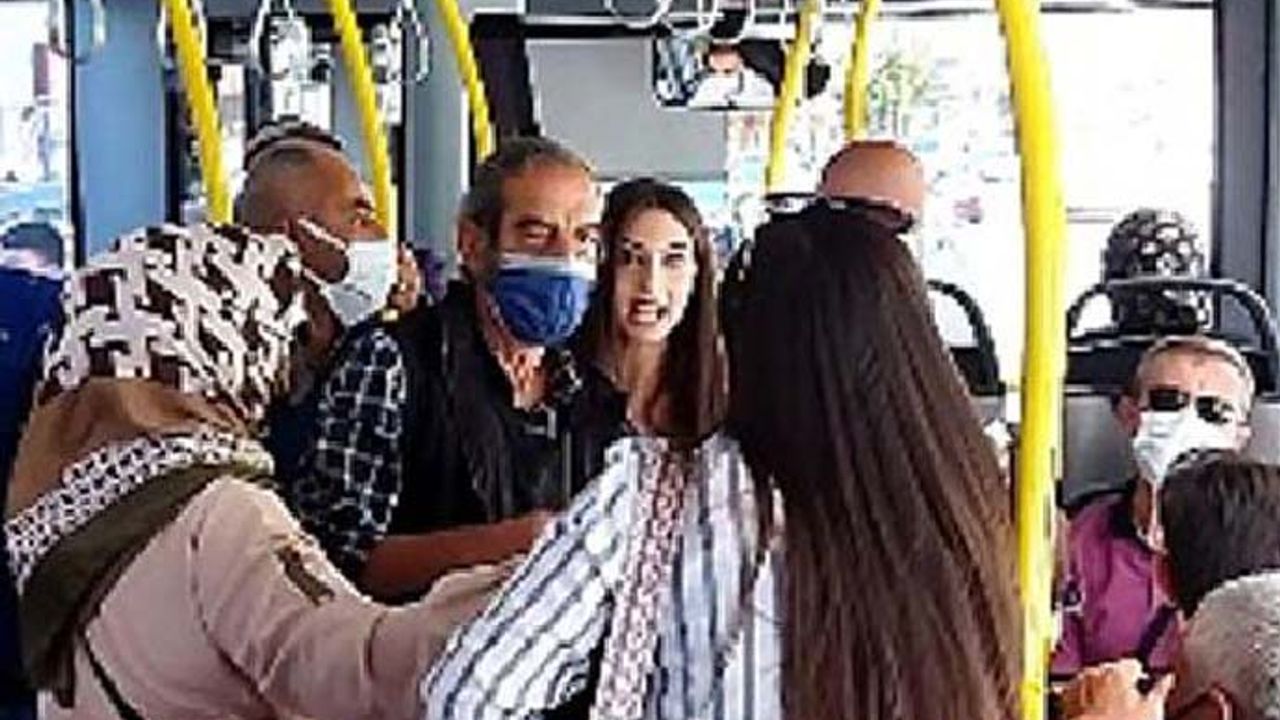 Sivas'ta halk otobüsü içerisinde iki kadın maske nedeniyle kavga etti, bu anlar cep telefonu kamerasına yansıdı.